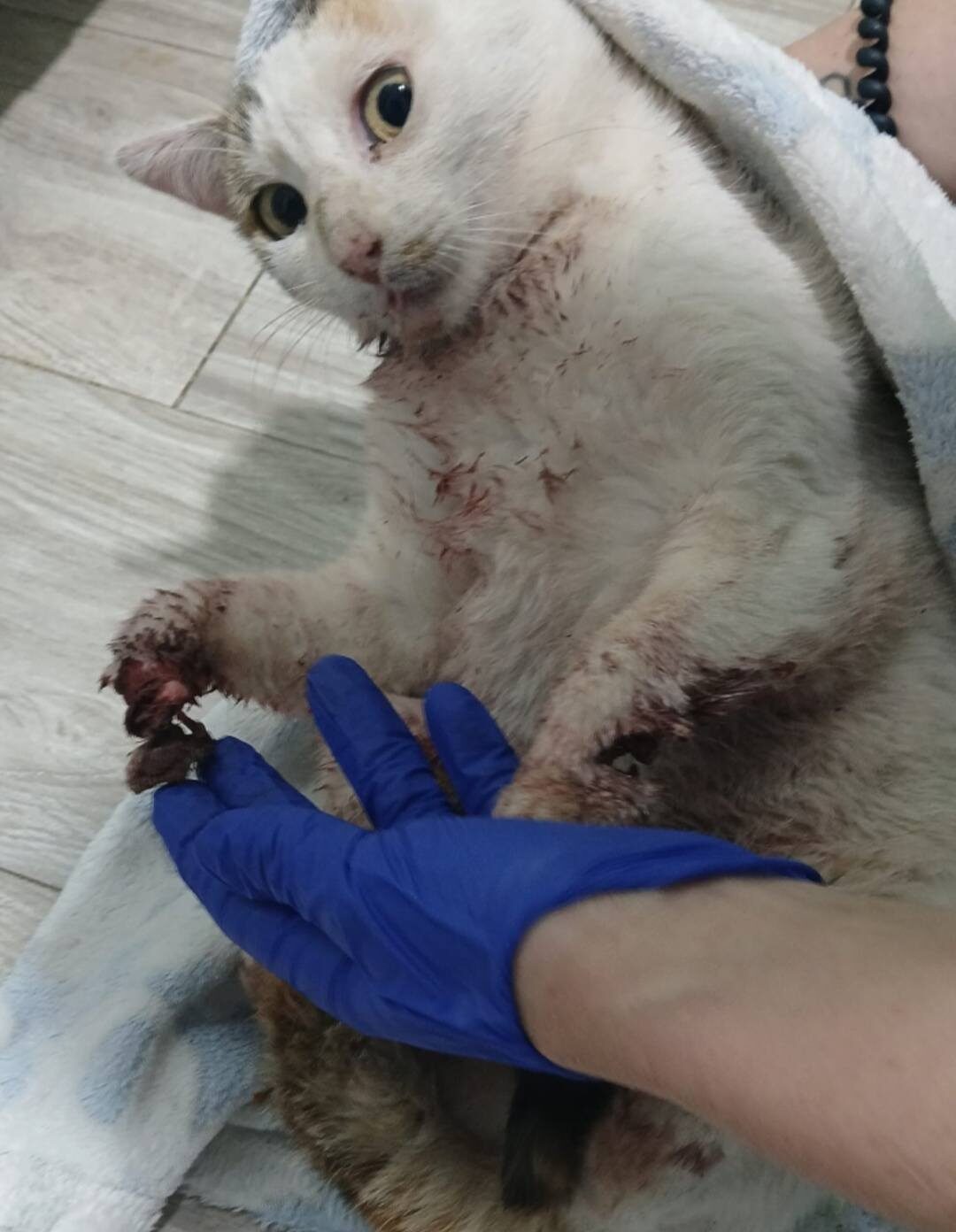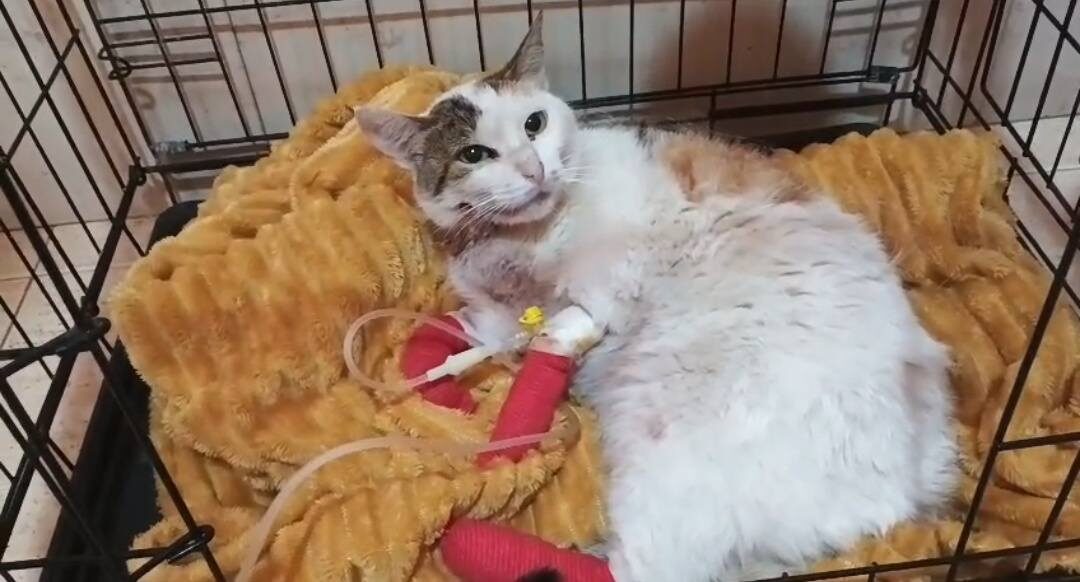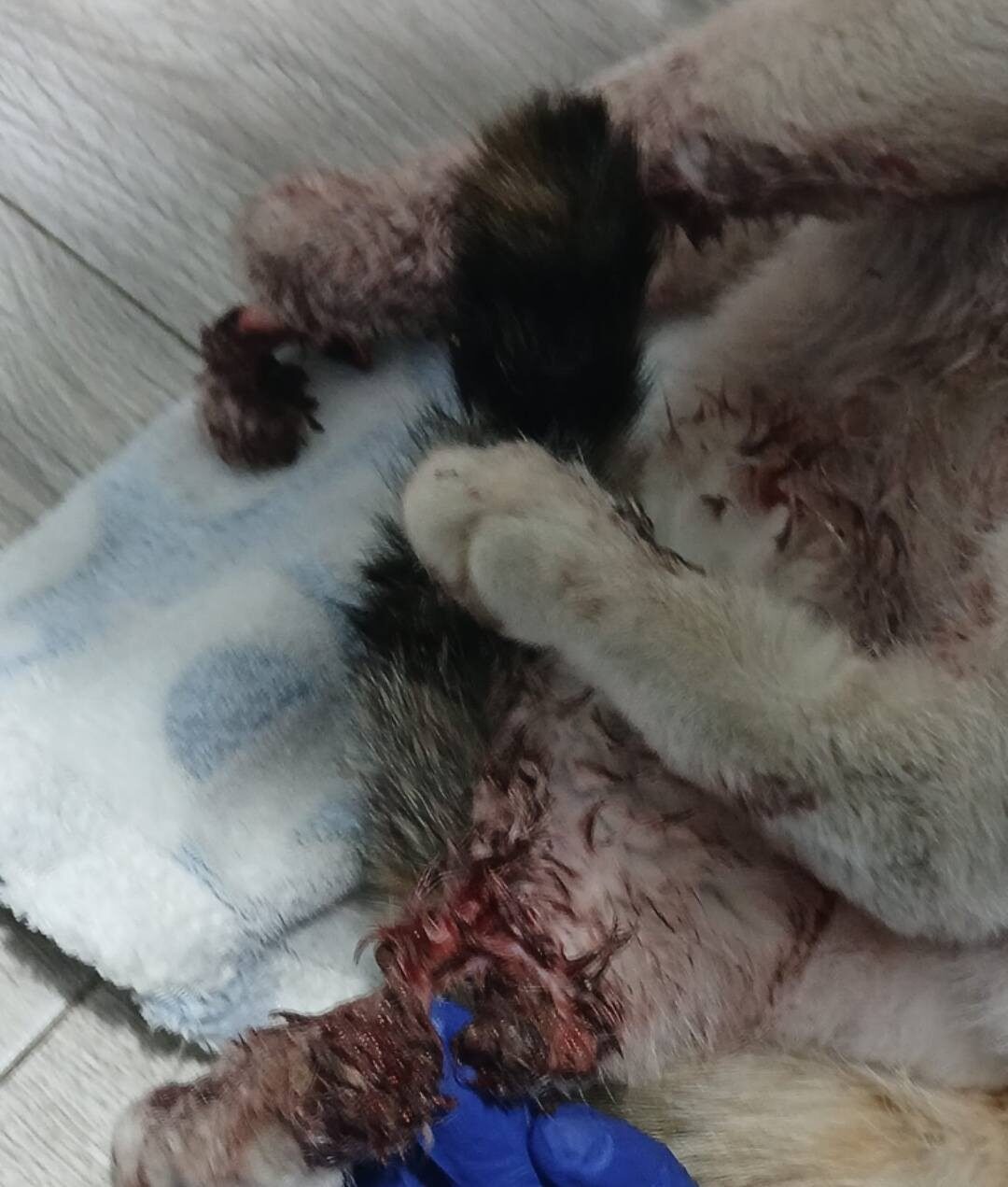Schwerverletzt kam dieses Kätzchen in die Perrera. Ihre Beinchen müssen irgendwo eingeklemmt gewesen sein. Die Verletzungen schon so schlimm, dass zwei Beinchen teilamputiert werden mussten. Das Kätzchen ist bei der Tierärztin und wird dort versorgt.
