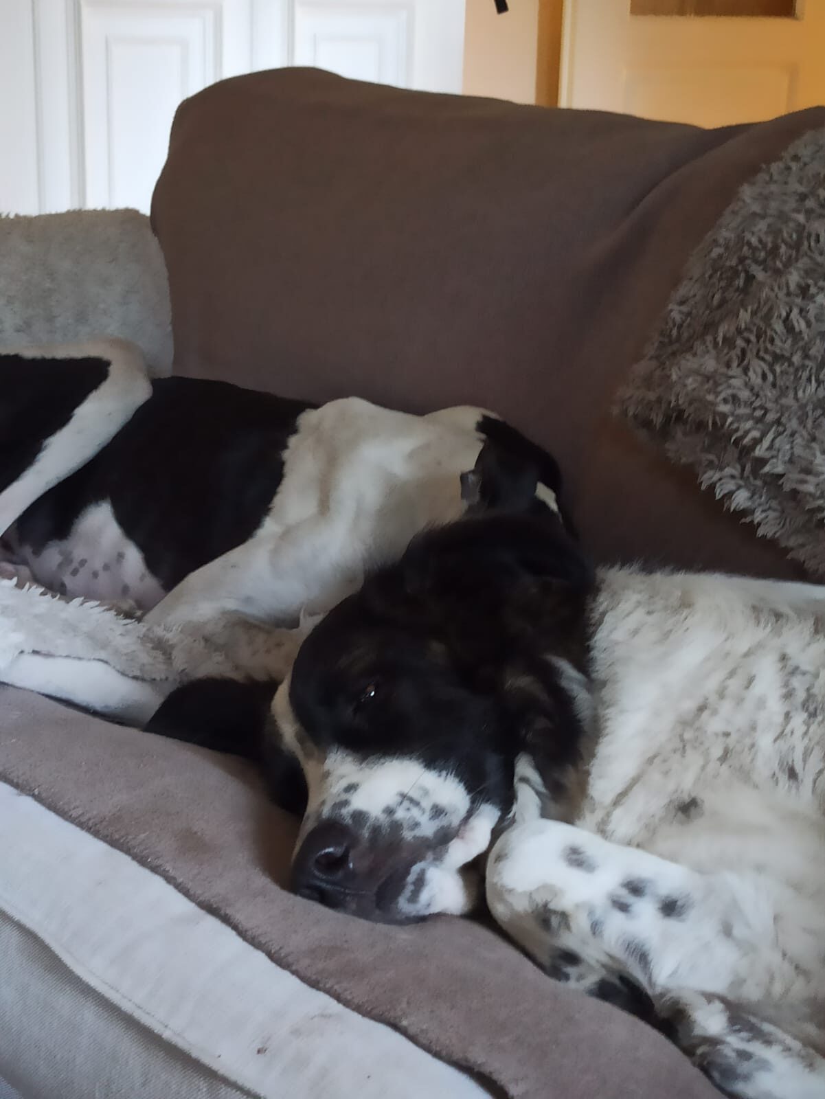 Tornado konnte letzten Monat auf eine Pflegestelle nach Deutschland reisen und erstaunte uns alle. Sofort hat er den Körperkontakt mit seinem Pflegefrauchen gesucht. In der Wohnung fühlte sich der hübsche Galgomann sicher. Die ersten Tage wollte er diese auch nicht verlassen. Stück für Stück erkundete er dann den Garten und geht mittlerweilen auch spazieren. Leevi wie er jetzt genannt wird ist noch weit davon entfernt ein souveräner Hund zu sein, aber er lernt sehr schnell und sein Vertrauen in den Menschen wurde nicht komplett zerstört.
