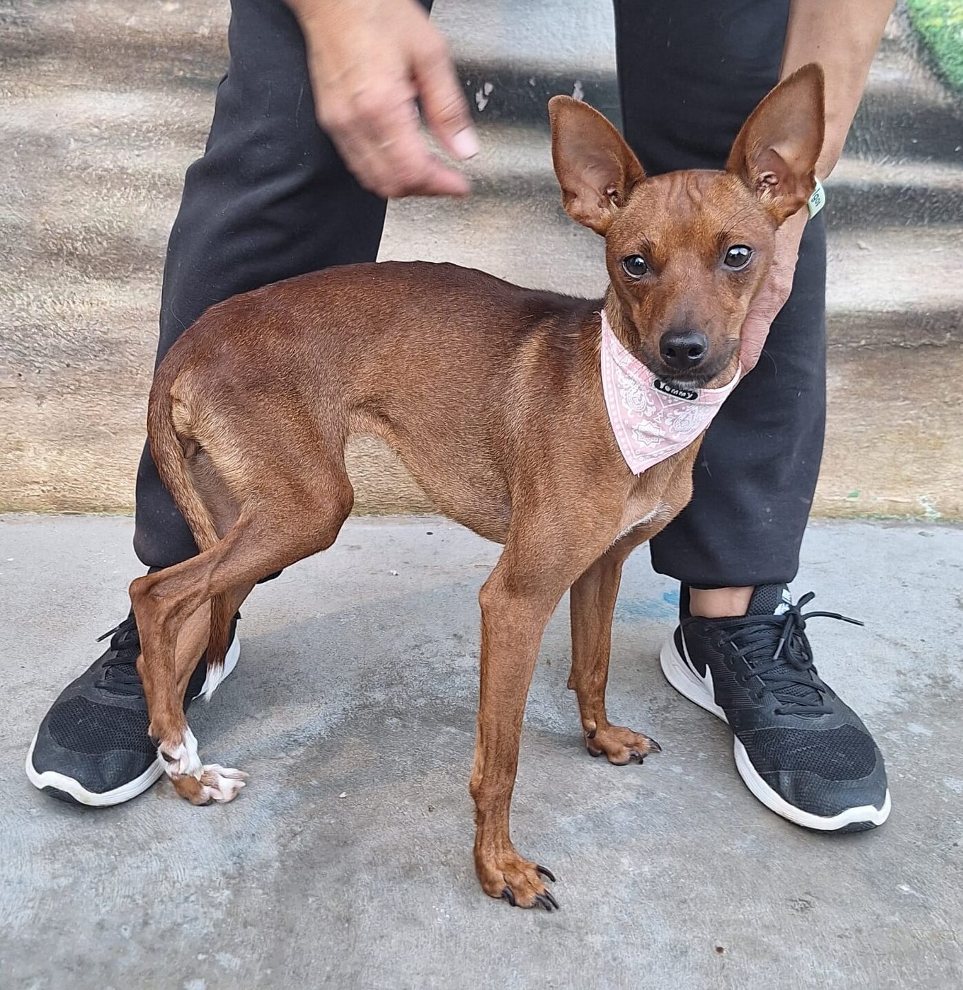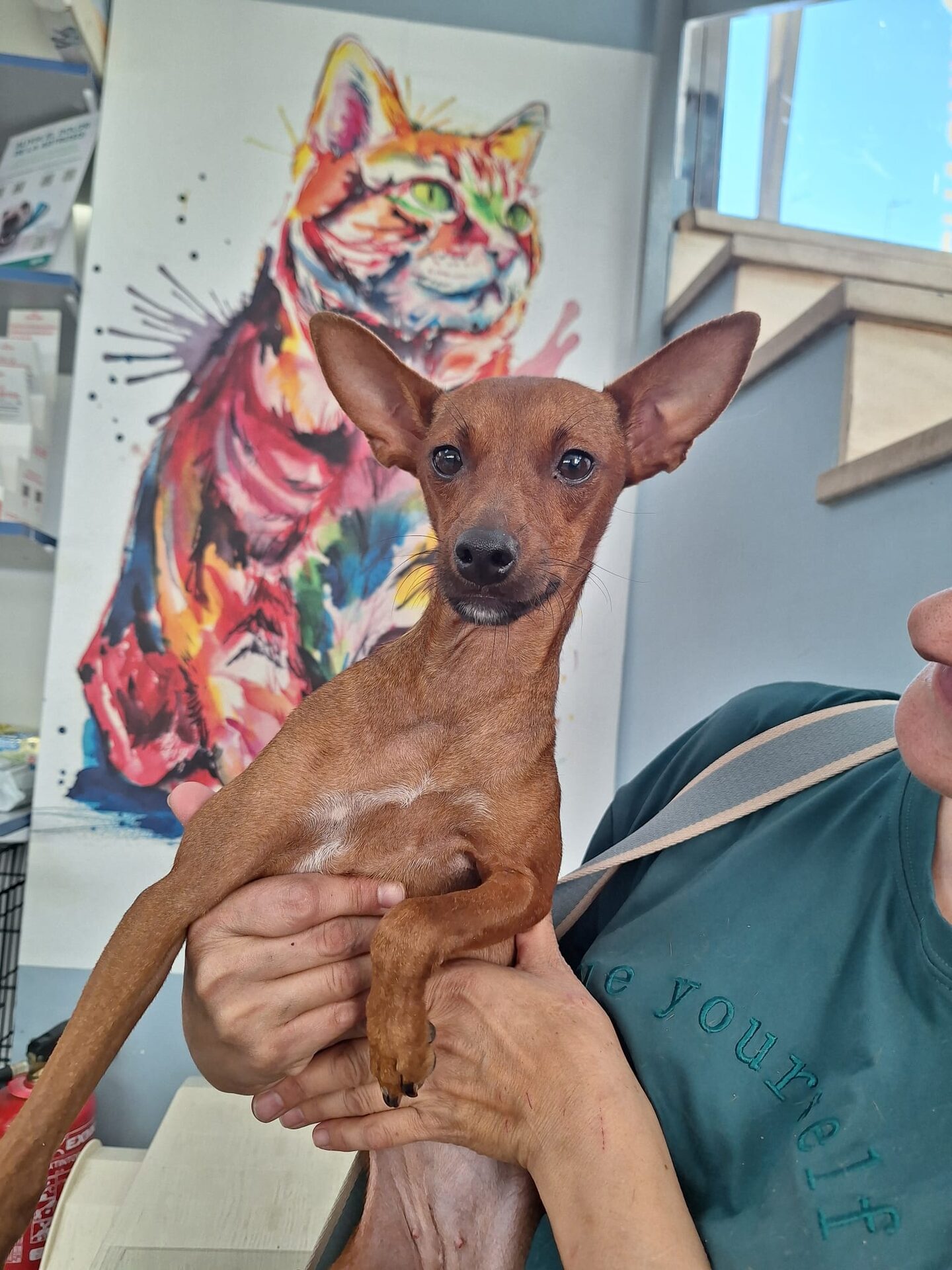 Die kleine Helga wiegt nur 4,8 kg, ist also ein Winzling mit langen Beinchen. Eines der Beinchen ist allerdings nicht in Ordnung. Was genau das Problem ist, wissen wir im Moment noch nicht. Sobald es mehr Infos zu Helga gibt, werden wir diese ergänzen.