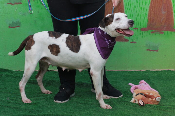Dem Gesäuge nach zu urteilen hat sie entweder noch vor kurzem Welpen gehabt oder aber häufiger in ihrem Leben. Dem wird natürlich in Zukunft durch eine Kastration vorgebeugt.