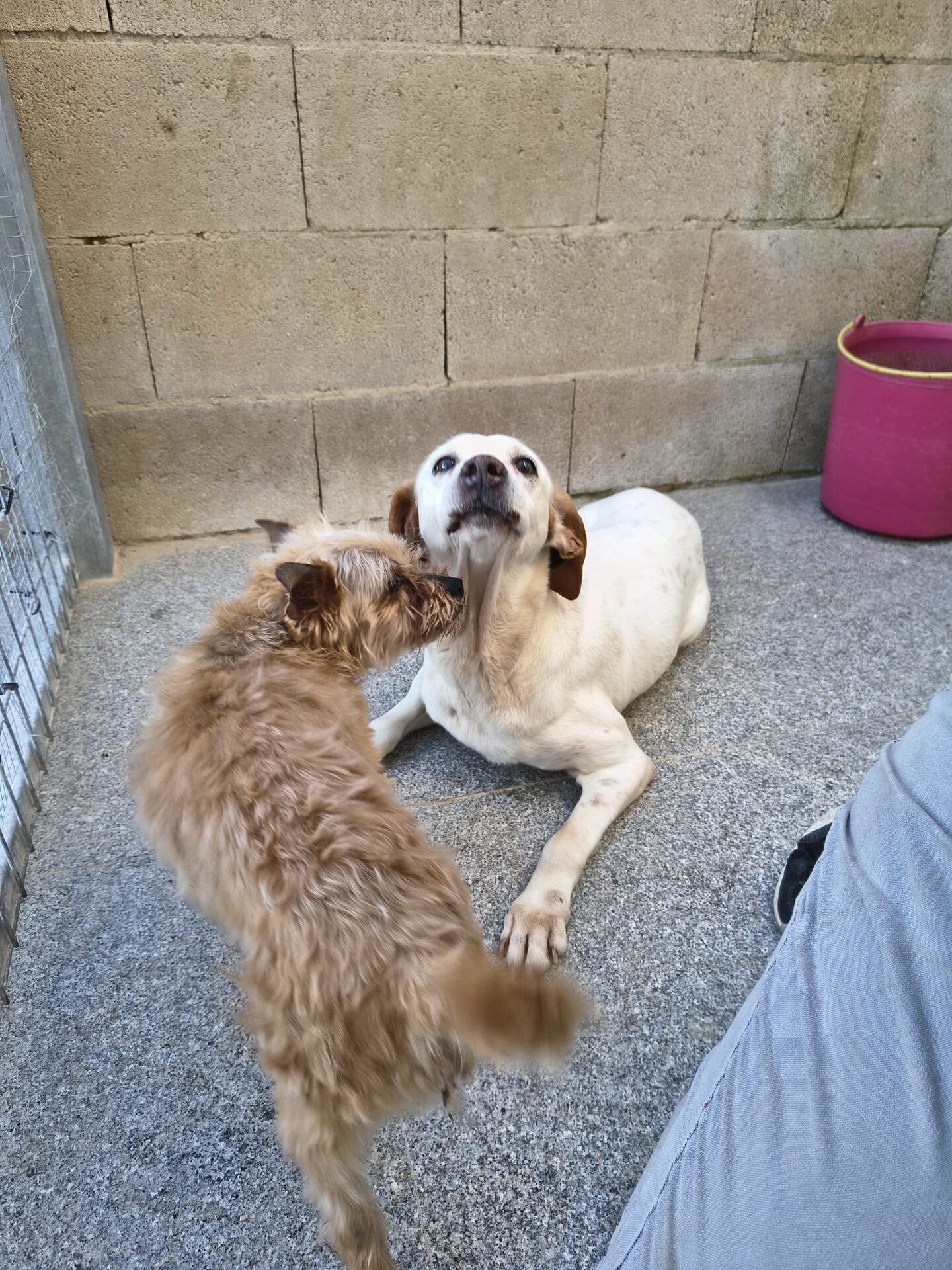Die 3 Hunde lebten bei einem alten Mann in einem Käfig mit Vogeldreck. Ihr Zweck war einzig, Nachwuchs zu zeugen und für die Jagd. In Anbetracht des Alters des Mannes, werden sie den Käfig schon länger nicht verlassen haben. Die Team von Recal konnte den Mann überzeugen, ihnen die Hunde zu überschreiben.