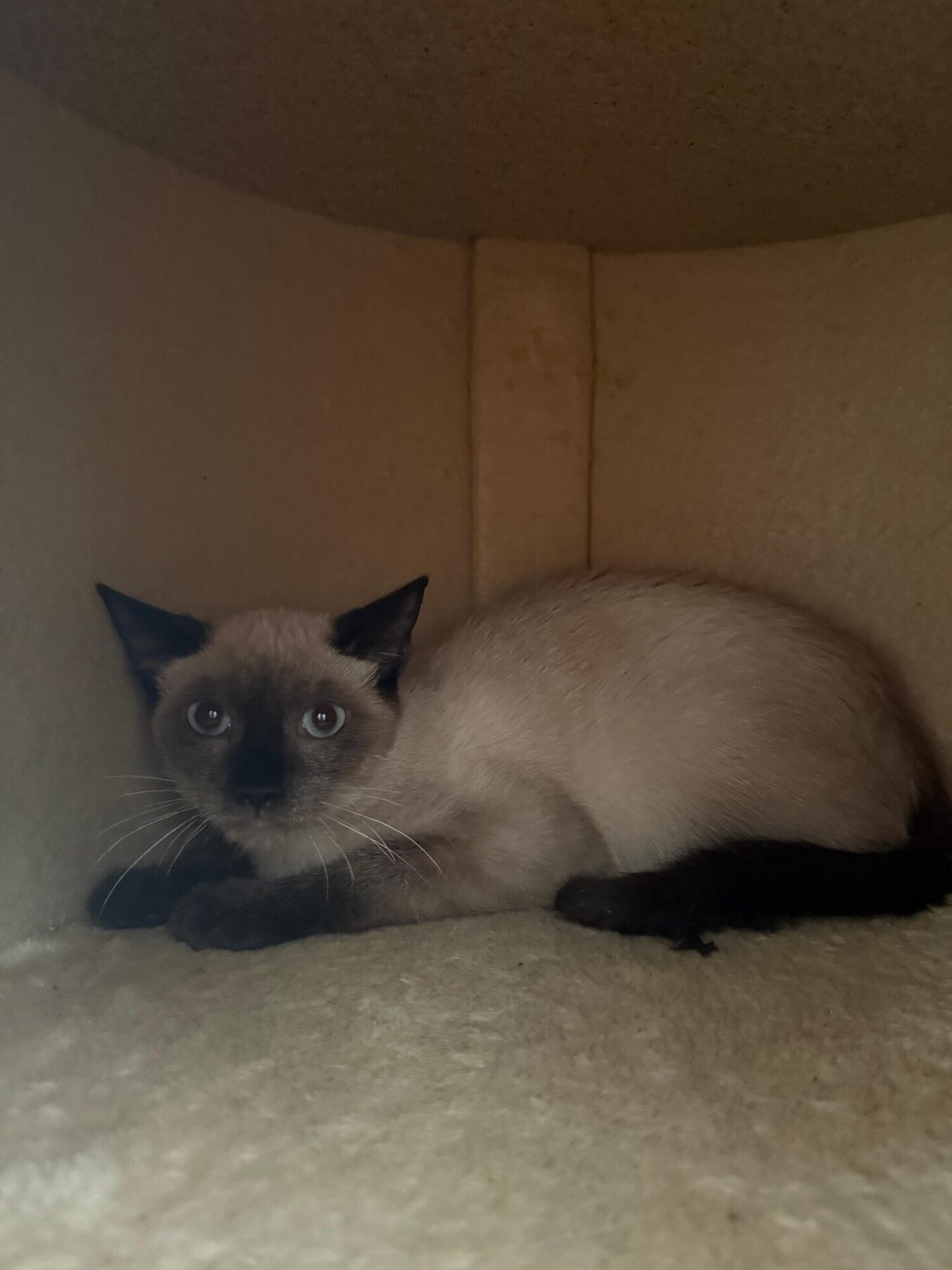 Pamela wartet in der Perrera von Almendralejo auf ein neues Zuhause. Man sollte meinen, dass es für die Siam-Kätzin kein Problem sein sollte aber Pamela ist ängstlich und das macht es schwer. Wir sind davon überzeugt, dass aus Pamela eine verschmuste Gefährtin werden kann. Zeit, Geduld und ganz viel Liebe wird ihr helfen, Streicheleinheiten und Zuneigung zu genießen.