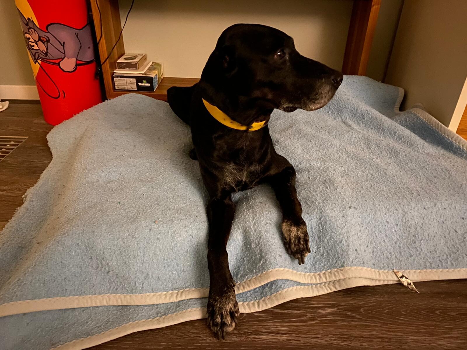 Dado ist ein sehr lieber und verspielter Kater, dabei aber sehr ausgeglichen. Wie auf dem Bild unschwer zu sehen, genießt er die neuen Annehmlichkeiten aus vollen Zügen.