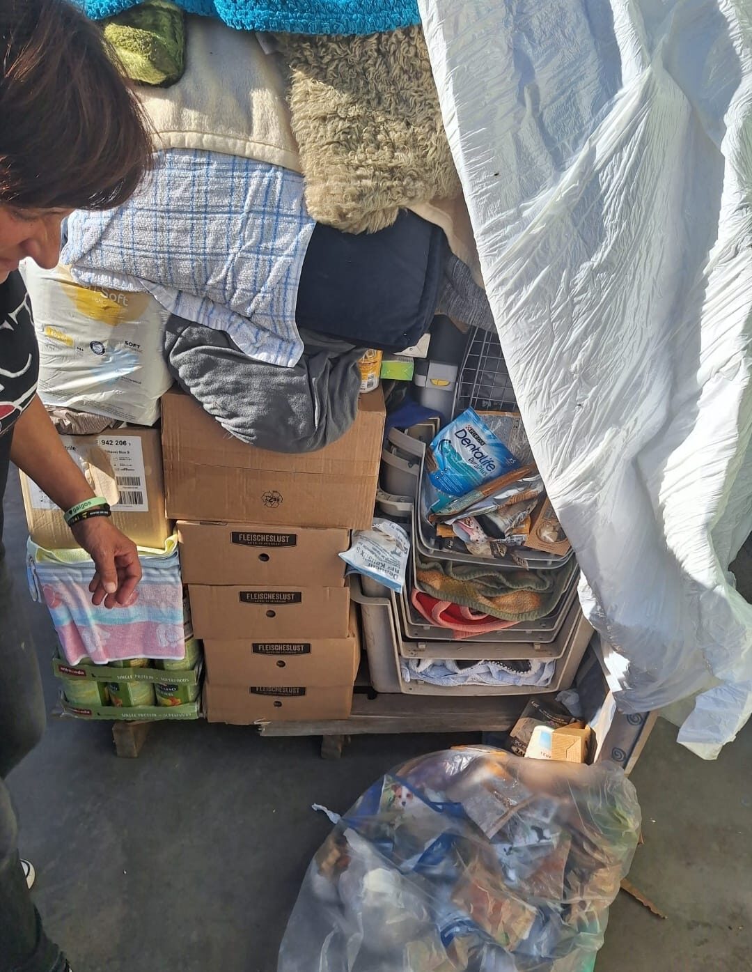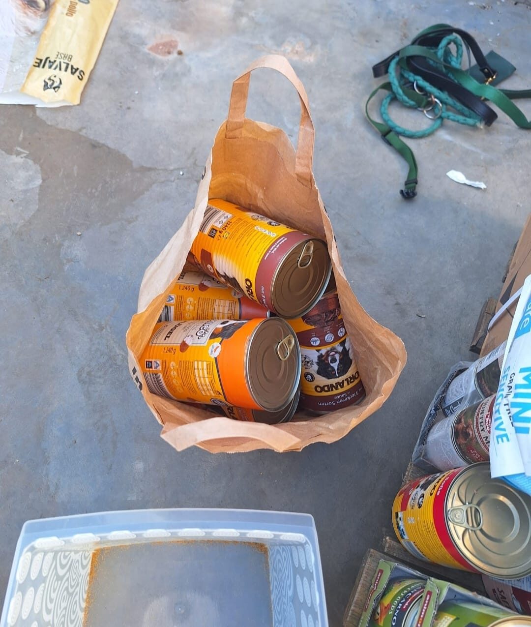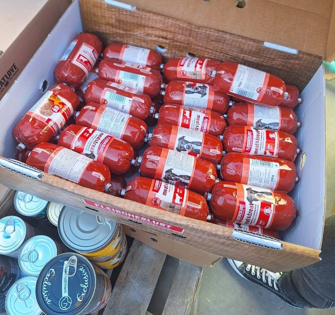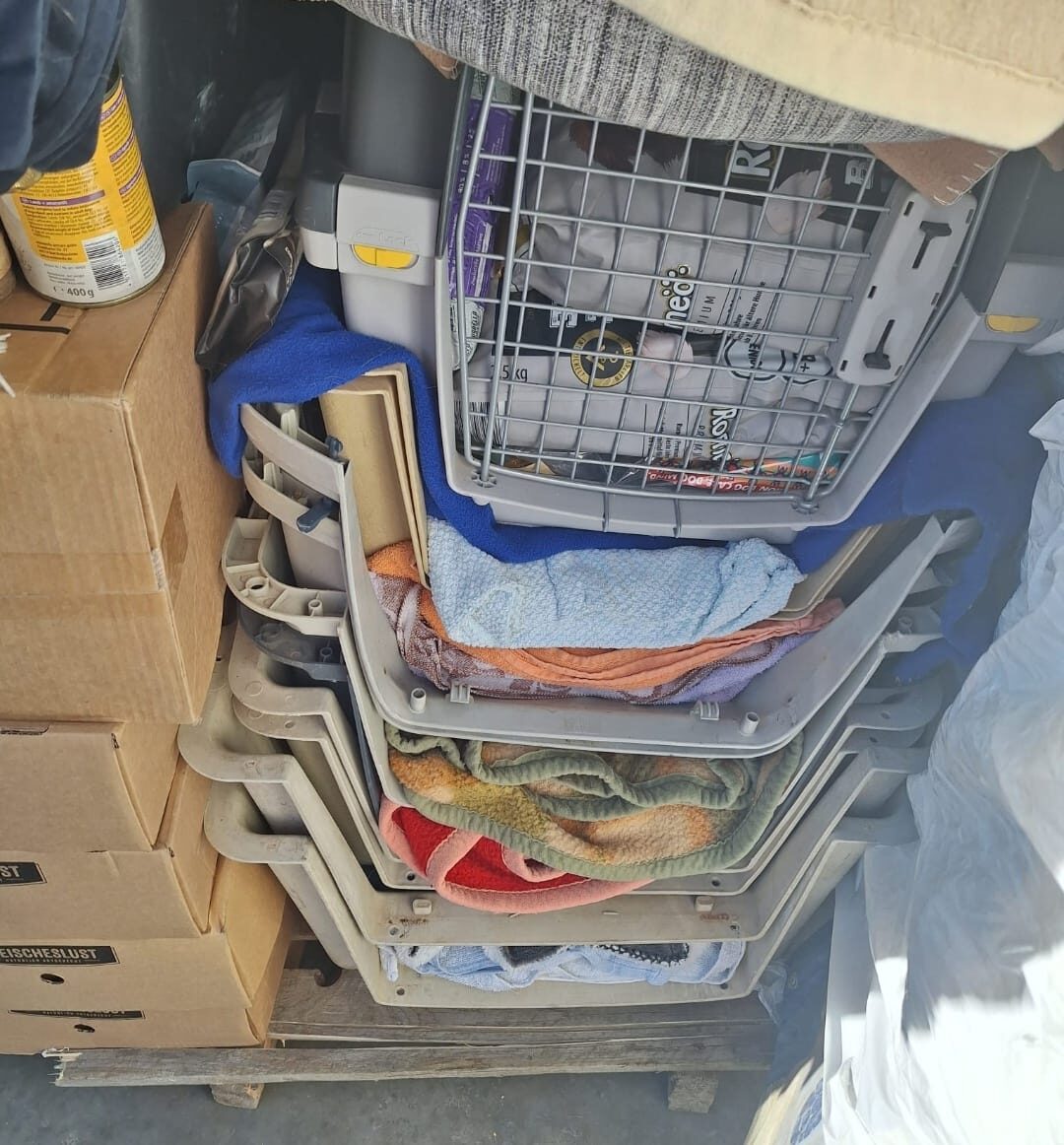 Ein Großteil der Spenden ist in Spanien angekommen. Futter, Decken, Halsbänder, Geschirre ..... und natürlich auch die Transportboxen.