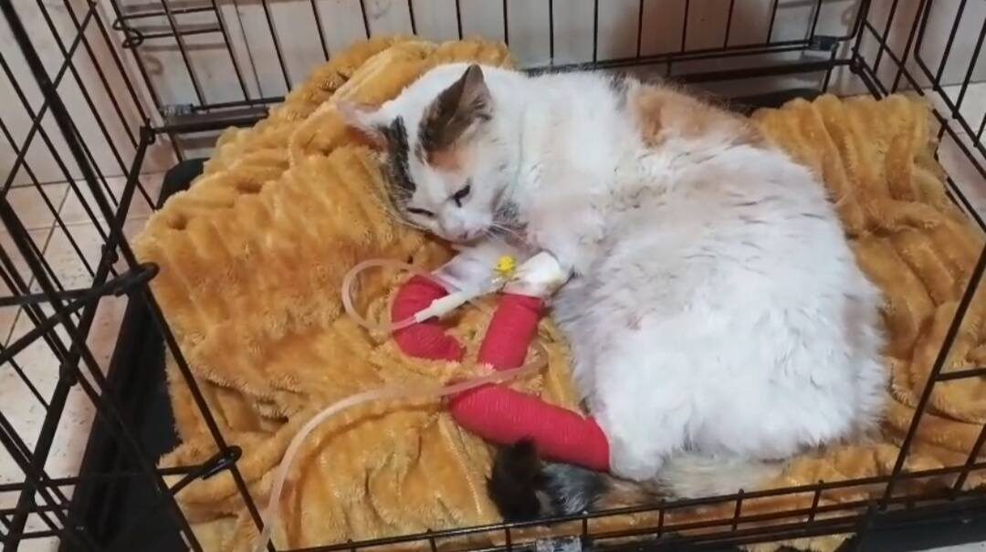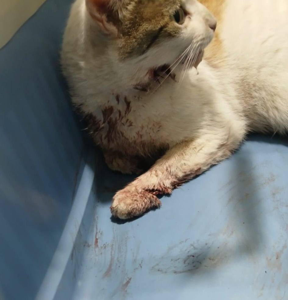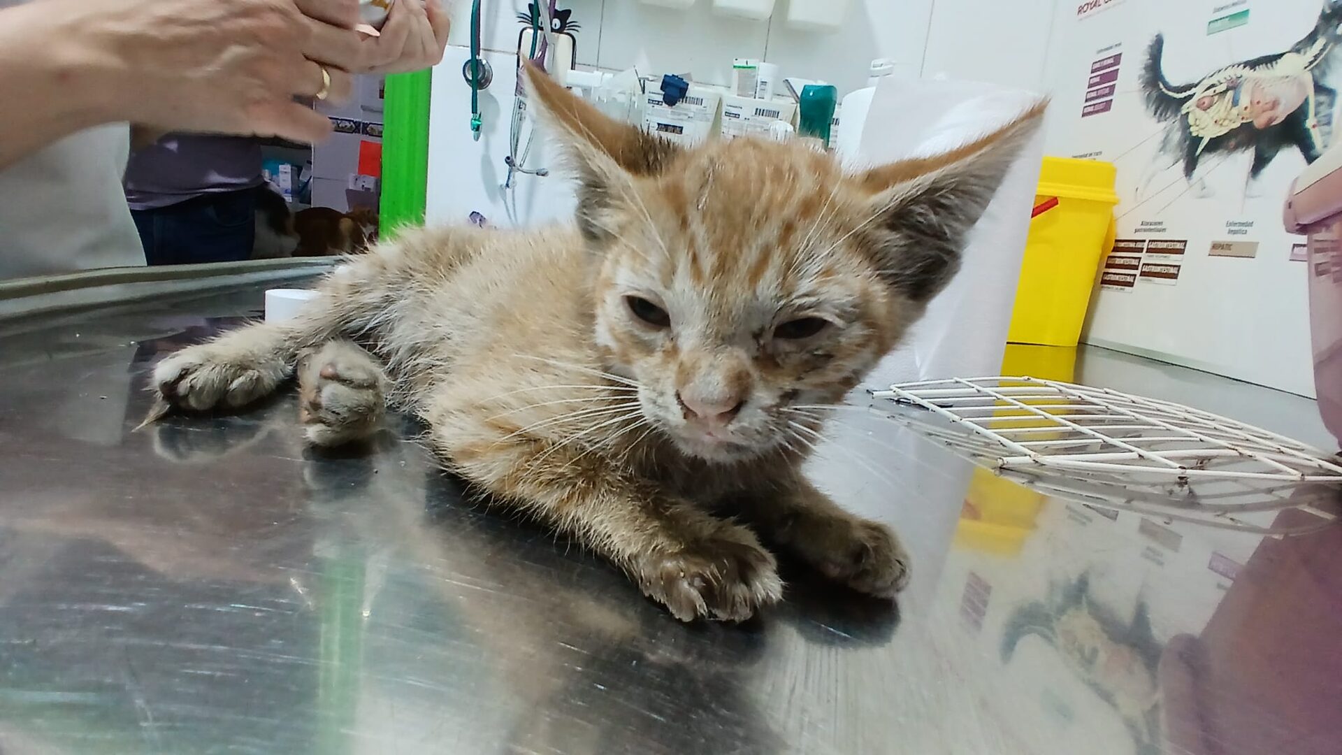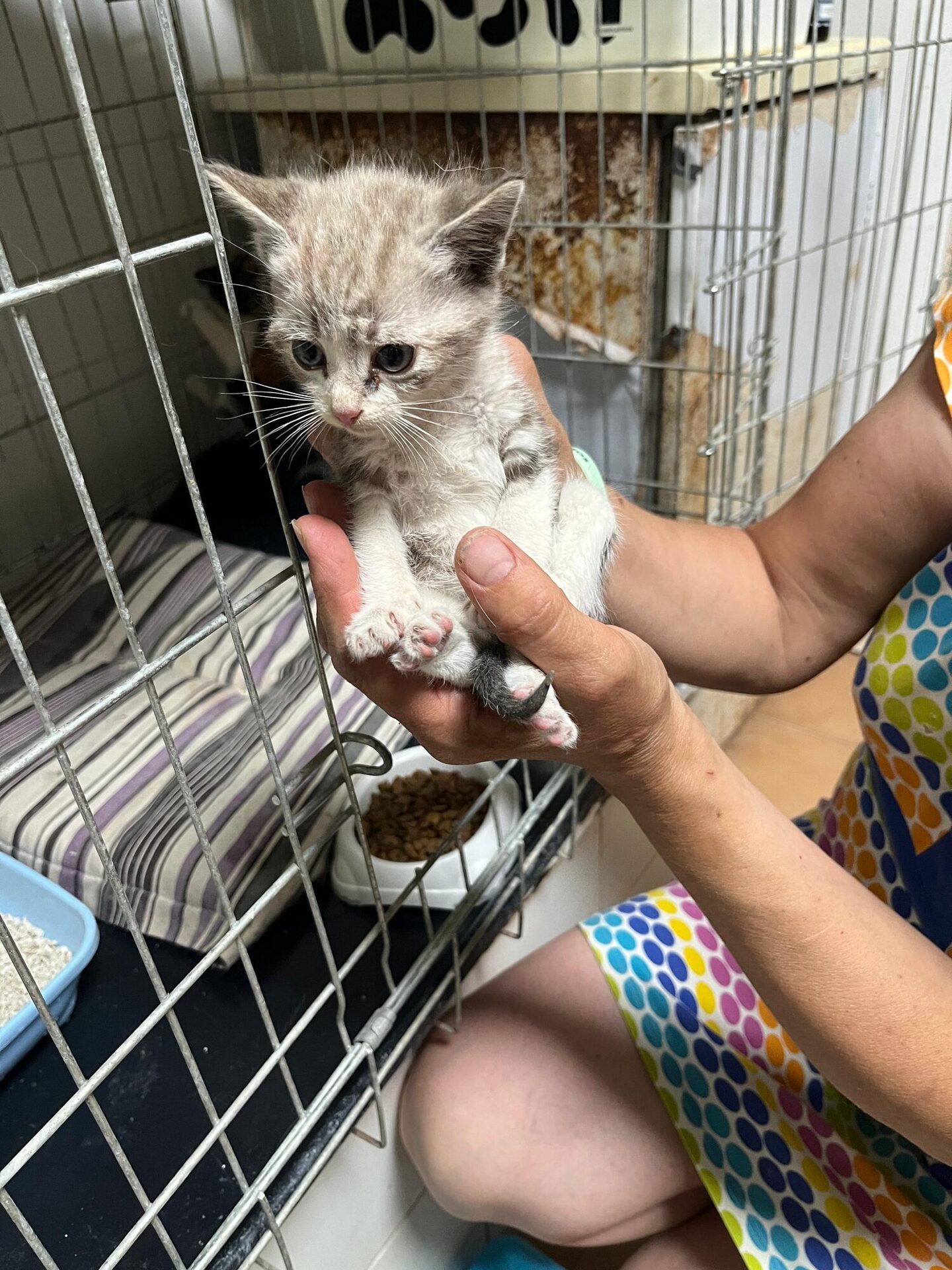Schwerverletzt kam dieses Kätzchen in die Perrera. Ihre Beinchen müssen irgendwo eingeklemmt gewesen sein. Die Verletzungen schon so schlimm, dass zwei Beinchen teilamputiert werden mussten. Das Kätzchen ist bei der Tierärztin und wird dort versorgt.