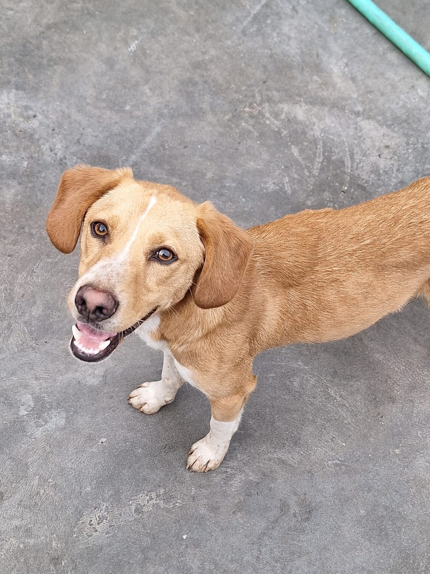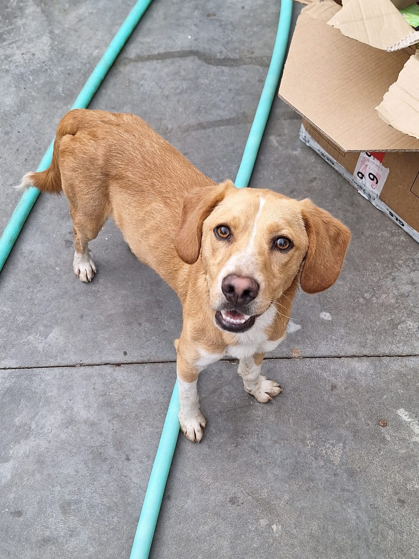 Für Bossi hat das Leben eine traurige Wendung genommen. Der junge Rüde wurde von seiner Familie im Stich gelassen und ist in der Perrera von Almendralejo gelandet.