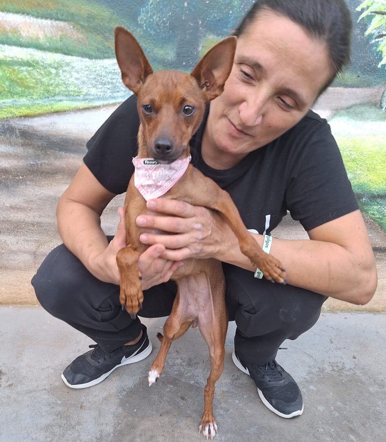 Die kleine Helga wiegt nur 4,8 kg, ist also ein Winzling mit langen Beinchen. Eines der Beinchen ist allerdings nicht in Ordnung. Was genau das Problem ist, wissen wir im Moment noch nicht. Sobald es mehr Infos zu Helga gibt, werden wir diese ergänzen.