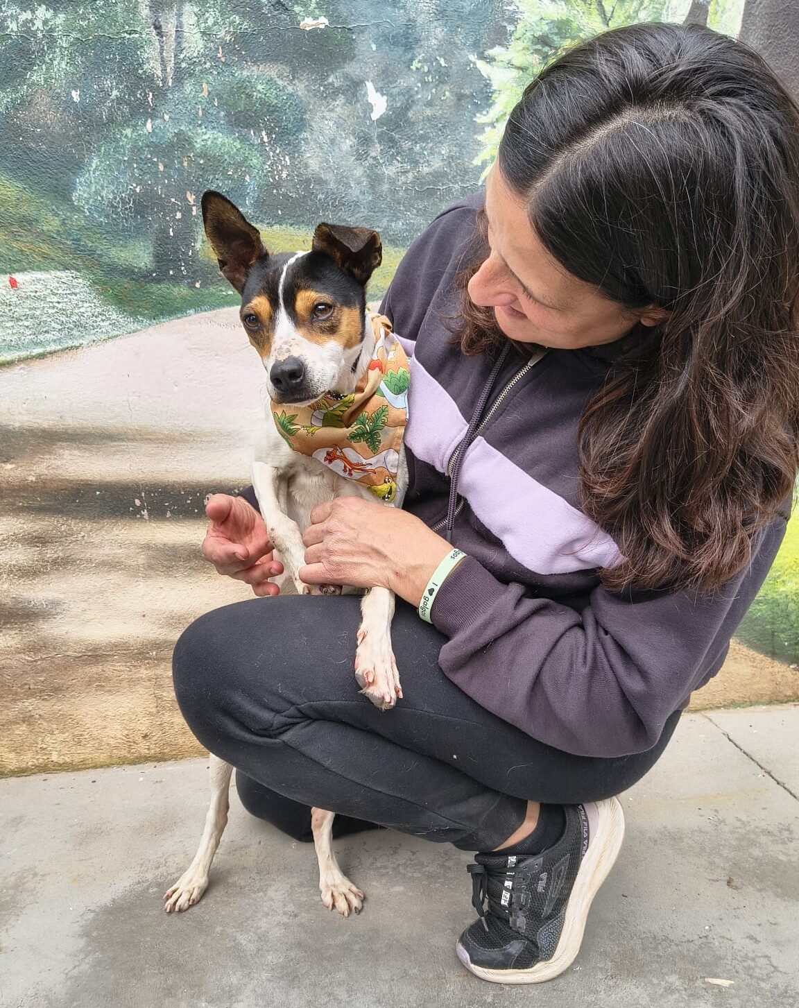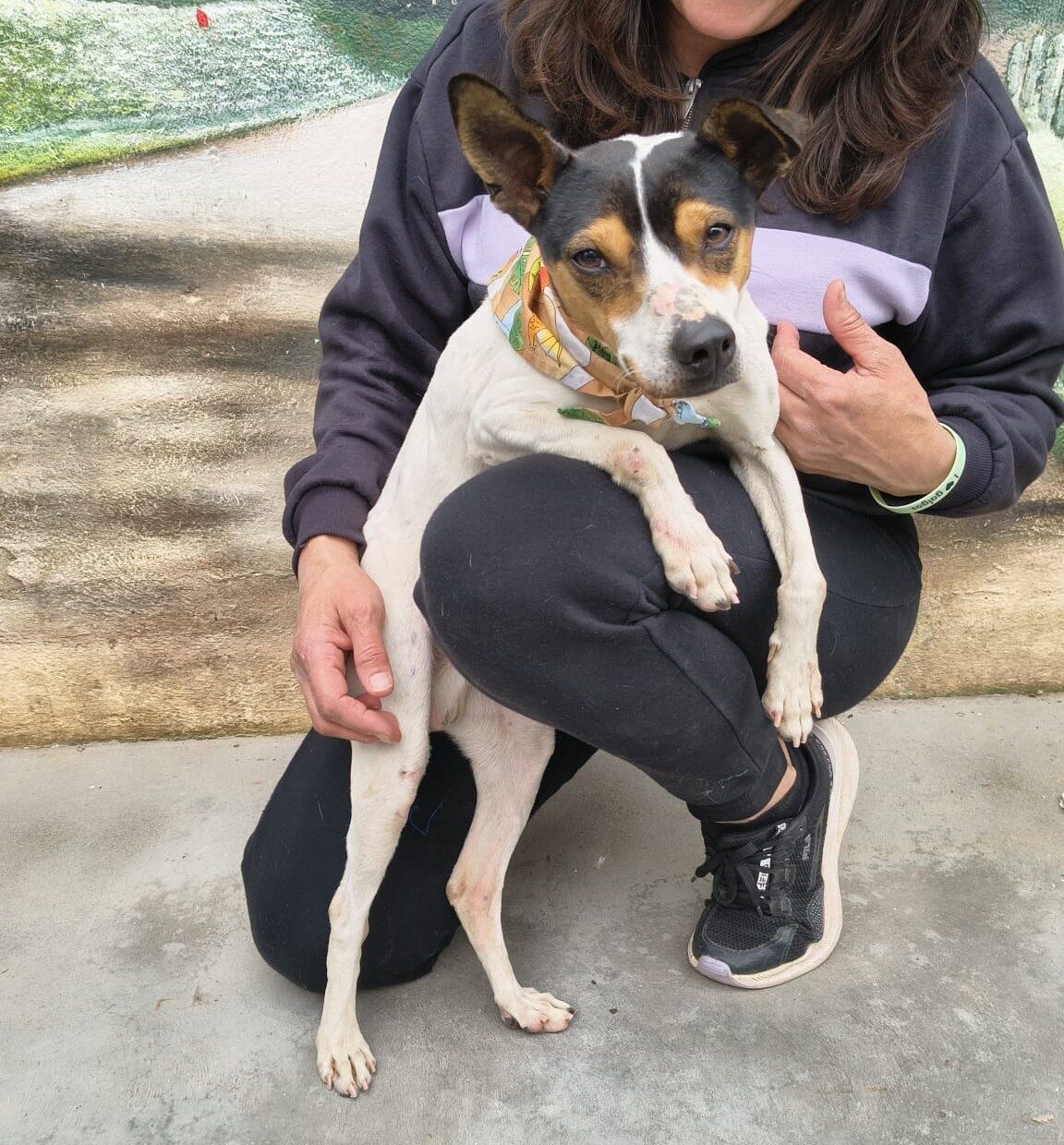 Anfangs hatte Santi Angst vor Menschen, doch nach ein paar Minuten wurde er sehr zutraulich. Am Tag, als Patricia ihn fand, wich er ihr nicht mehr von der Seite. Er leckte sie ständig ab und kletterte auf sie, damit sie ihn streicheln und beschützen konnte.