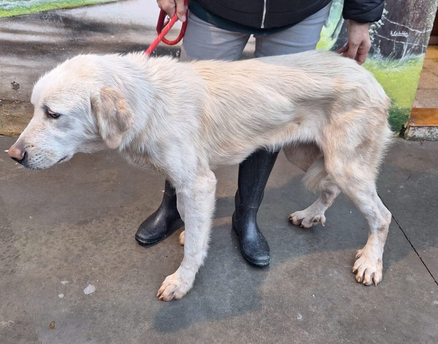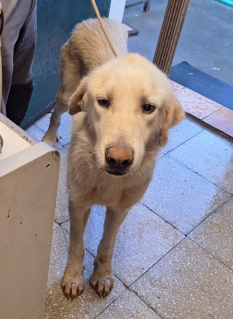 Thelma wurde völlig abgemagert und entkräftet gefunden. In der Perrera wird die liebe Thelma gut versorgt und ihr Zustand hat sich stabilisiert. Dort lebt sie mit Artgenossen beiderlei Geschlechts zusammen. Menschen gegenüber ist Thelma anfangs noch unsicher aber sie lernt, dass es die Menschen gut mit ihr meinen.